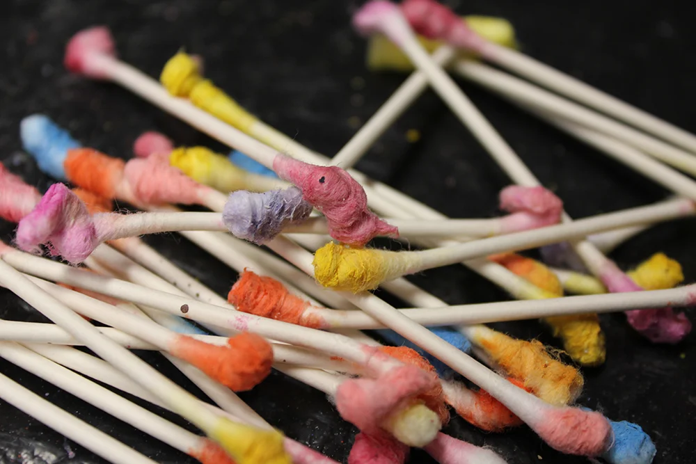 Working on many things at the same time right now. Pictured: ornaments and candy colored ear wax.